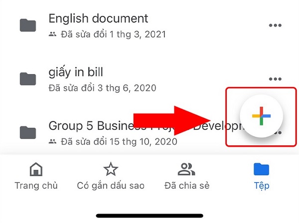 Bước 1: Tại ứng dụng Google Drive trên iPhone, bạn click vào biểu tượng dấu cộng.