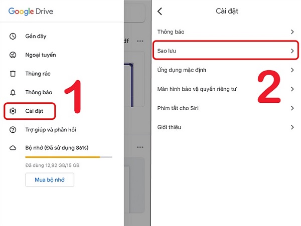 Bước 2: Tiếp đến bạn chọn Cài đặt/ Sao lưu.