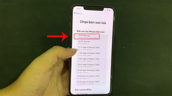 Bước 4: Chọn bản sao lưu mới nhất và chờ quá trình khôi phục hoàn tất.