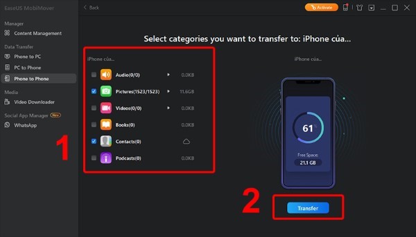 Bước 3: Mở phần mềm EaseUS MobiMover, chọn chế độ Phone to Phone.