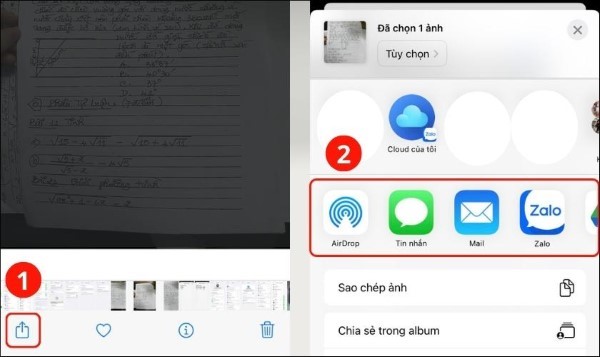Chuyển dữ liệu riêng lẻ qua AirDrop, Message, Mail