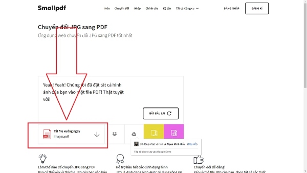 Bước 3: Chọn tải xuống ngay để tiến hành tải file PDF vừa tạo từ ảnh về máy tính.