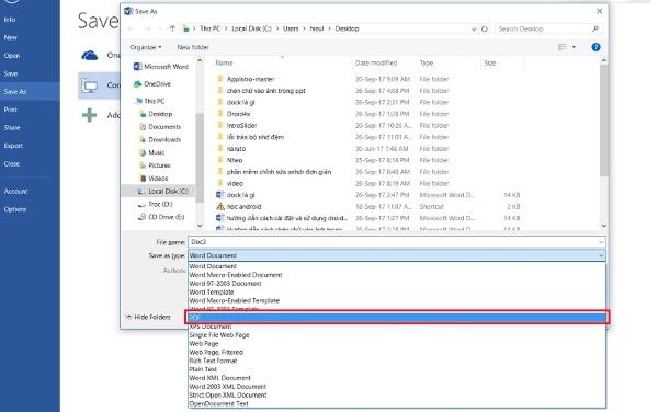 Bước 4: Chọn định dạng file cần lưu là PDF.