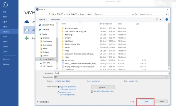 Bước 5: Nhấn Save để lưu file ở định dạng PDF mong muốn.