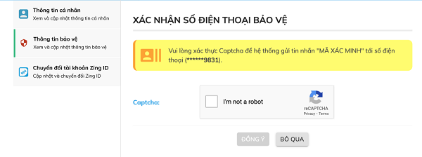 Trường hợp 3: Tài khoản đã thực hiện khai báo thông tin cá nhân và đã tiến hành xác nhận thông tin bảo vệ (thông qua số điện thoại hoặc email).