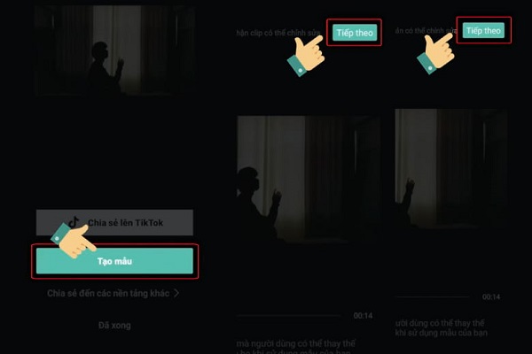 Bước 2: Sau đó hãy nhấn chọn mục “Tạo mẫu” >> chọn “Tiếp theo” để xác nhận video này có thể chỉnh sửa. Tiếp tục nhấn chọn “Tiếp theo” để xác nhận văn bản có thể chỉnh sửa.