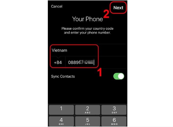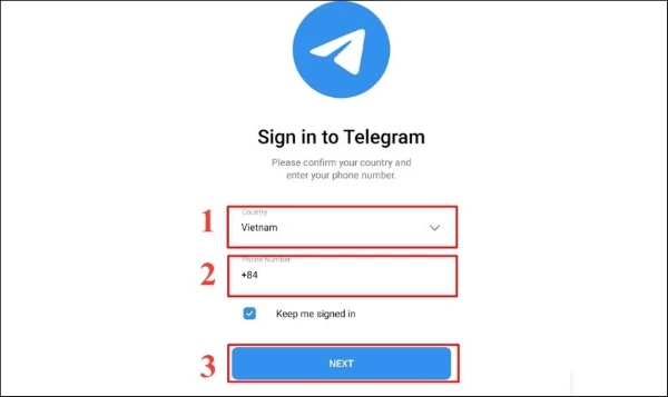 Bước 3: Bạn chọn quốc gia > nhập số điện thoại đã đăng ký Telegram > nhấn Next.