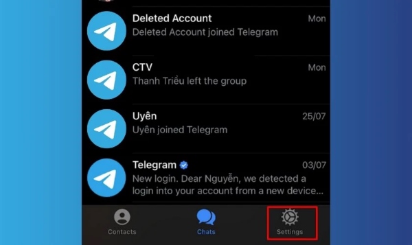 Bước 2: Sau đó, bạn mở ứng dụng Telegram trên điện thoại của mình lên > chọn vào Settings.