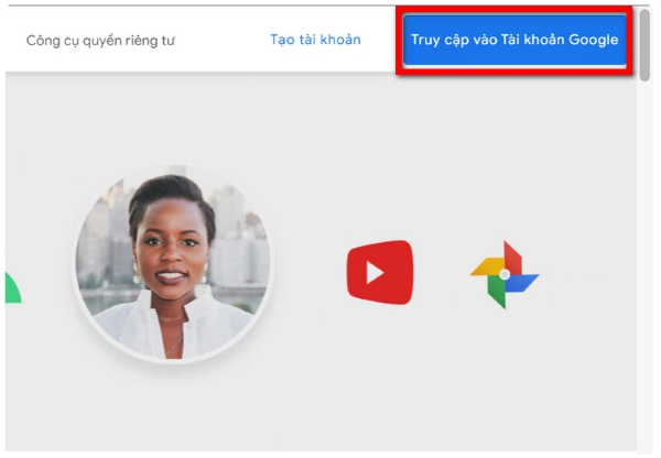 Bước 1: Truy cập trên máy tính và thực hiện vào trang quản lý tài khoản Google tại đây. Sau đó chọn Truy cập vào Tài khoản Google ở vị trí góc trên cùng phía bên phải.
