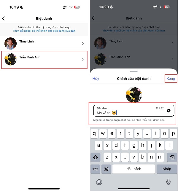 Bước 3: Chọn tên của người mà bạn muốn thay đổi biệt danh > Nhập biệt danh mà bạn muốn đặt cho họ và hoàn tất.