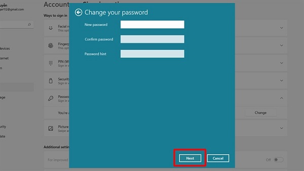 Lúc này máy tính sẽ hiện ra phần giao diện cài đặt mật khẩu giống như trên Windows 10 hay Windows 11. Và cách đặt mật khẩu trên máy tính ở trong Windows 8 cũng giống như cách đặt trong Windows 10.