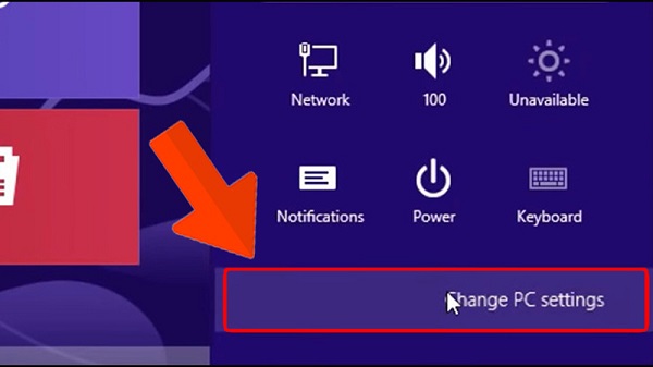 Để mở tính năng này thì người dùng hãy nhấn vào tổ hợp phím Windows + I >> Sau đó chọn phần Change PC Settings.