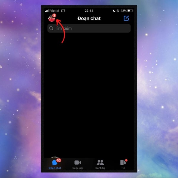 Mở ứng dụng Messenger và nhấn vào biểu tượng avatar ở góc trên bên trái.