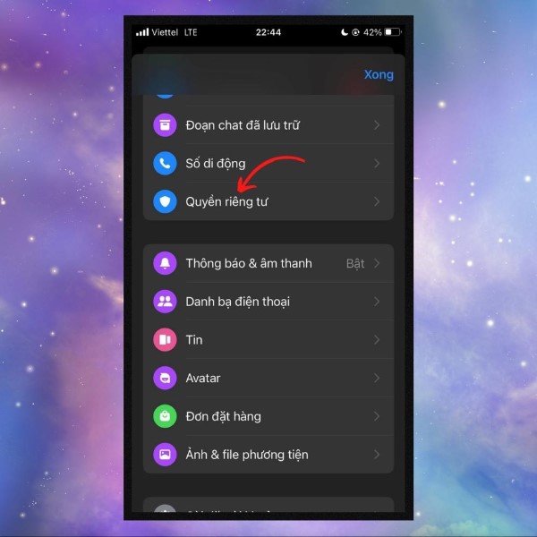 Bước 2: Truy cập vào cài đặt quyền riêng tư