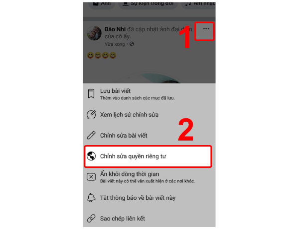 Bước 4: Đợi quá trình tải lên hoàn tất và hiện lên dòng thời gian và chọn vào dấu 3 chấm bên góc phải của giao diện và chọn vào mục Chỉnh sửa quyền riêng tư.