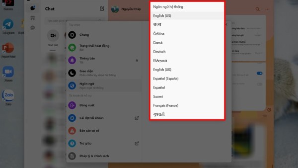 Trên máy tính, bạn có thể chỉnh ngôn ngữ riêng cho Messenger mà không cần đổi toàn bộ hệ thống.