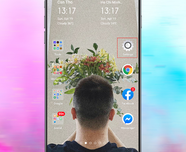 Tìm và mở Cài đặt từ màn hình chính hoặc danh sách ứng dụng.