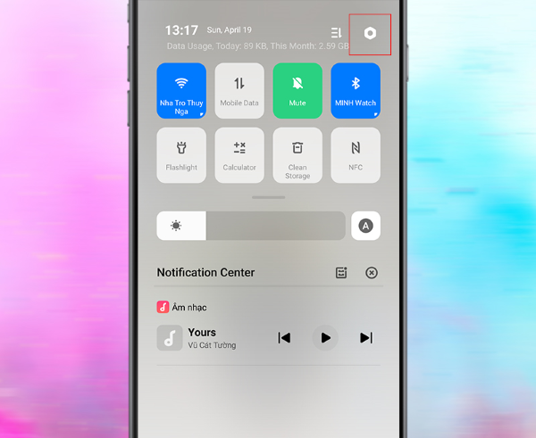 Cách khác: Kéo từ trên xuống để mở Thanh thông báo, nhấn vào biểu tượng Bánh răng để vào Cài đặt.