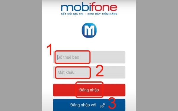 Bước 1: Mở ứng dụng MobiFone trên điện thoại của bạn > nhập Số thuê bao > nhập Mật khẩu > nhấn Đăng nhập.