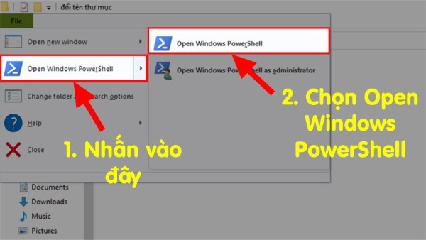 Bước 1: Mở File Explorer > Vào thẻ File > Chọn Open Windows PowerShell.