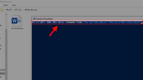 Ví dụ: rename-item “Ho va ten.docx” “Ma so sinh vien.docx”