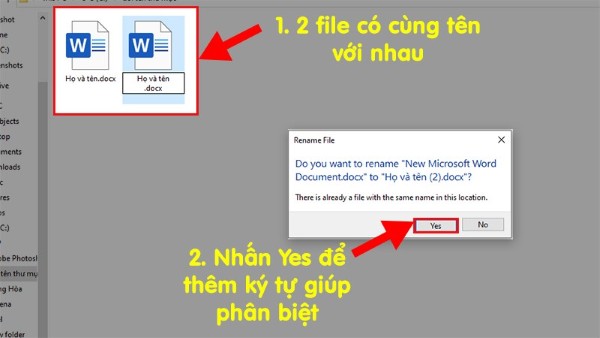Gợi ý: Windows sẽ hiển thị thông báo nếu tên trùng, bạn chỉ cần xác nhận để hệ thống tự động thêm hậu tố phân biệt.