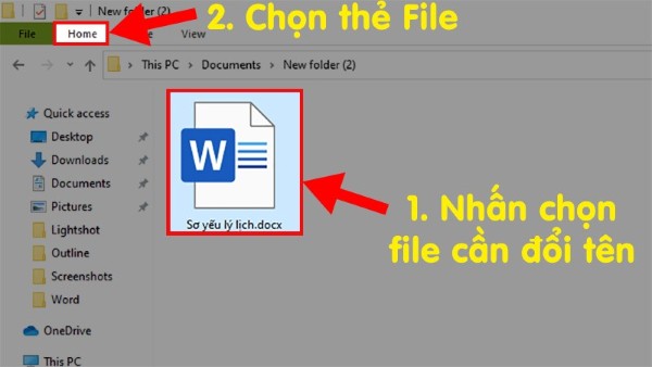 Một trong những cách đổi tên file trên máy tính ít người biết đến là dùng Menu Home trong File Explorer.