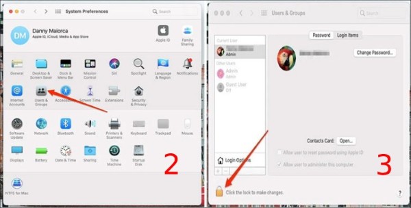 Bước 3: Nhấp vào biểu tượng ổ khóa ở góc trái phía dưới màn hình > Nhập mật khẩu khi hệ thống yêu cầu > Chọn Unlock.