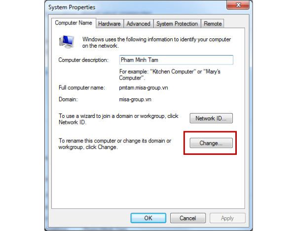 – Tên mới của máy tính có thể mất một vài phút để đồng bộ hóa với hệ thống nếu đang hoạt động trong mạng LAN hoặc tên miền nội bộ (Domain).