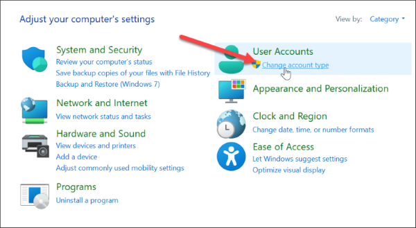 Bước 3: Nhấn tiếp vào Change account type.