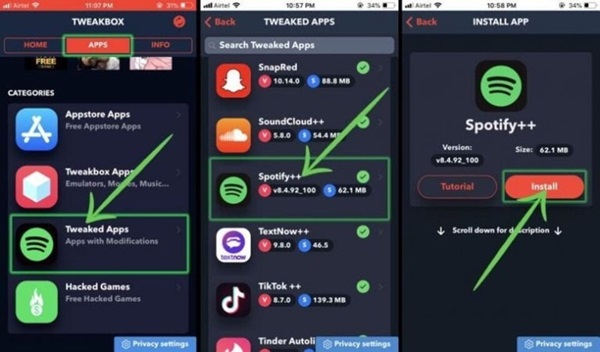 Bạn cần sử dụng ứng dụng bên thứ 3 như TweakBox nếu muốn cài đặt ứng dụng Spotify Premium Free trên iPhone.