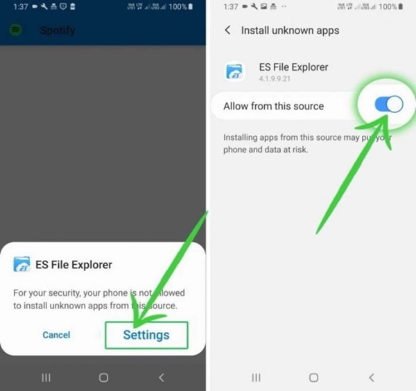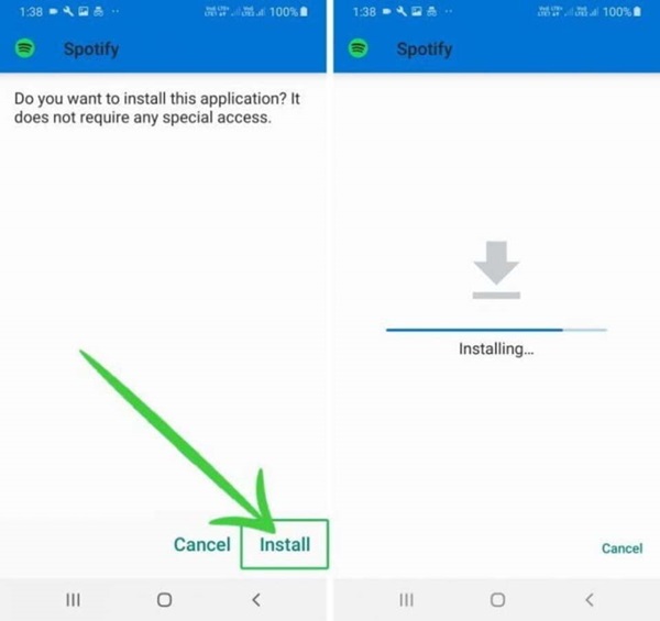 Tiếp theo, bạn truy cập vào trang web cung cấp Spotify Premium Free cho Android và tải file Spotify Premium APK về điện thoại. Lưu ý hãy chọn trang uy tín để tải nhé. Sau khi quá trình tải hoàn tất, bạn mở file APK và bấm vào mục Cài đặt.