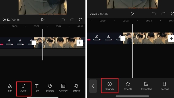 Để thêm âm thanh thu hút chi video bạn chọn vào mục “Audio” > chọn “Sounds” > chọn đoạn nhạc muốn chèn vào video > nhấn lưu và hoàn tất.