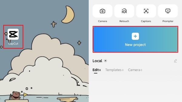 Trước khi tiến hành edit CapCut, bạn cần tải ứng dụng về điện thoại trên Google Play hoặc App Store miễn phí. Sau khi tải ứng dụng về máy, bạn mở CapCut lên > chọn “New Project” (Dự án mới) để bắt đầu một dự án chỉnh sửa mới.