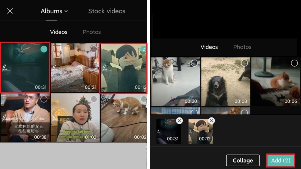 Bạn có thể chọn một hoặc nhiều video muốn chỉnh sửa bằng cách chọn “Add” để thêm video, hình ảnh. CapCut sau đó sẽ tự động ghép các video được chọn với nhau theo thứ tự lựa chọn.