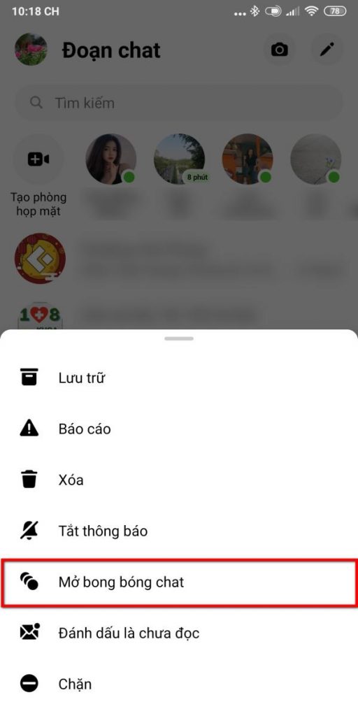 Cuối cùng, bạn quay trở lại cửa sổ chat của ứng dụng Messenger, nhấn giữ vào nội dung trò chuyện mà mình muốn ghim tin nhắn và chọn Mở bong bóng chat để hoàn tất quá trình.