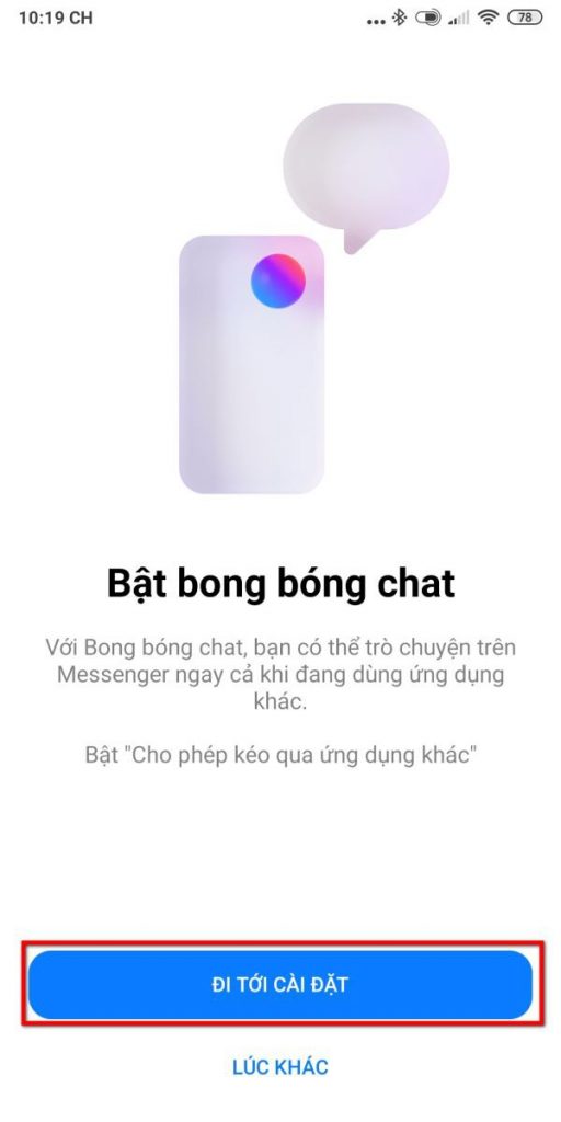 Tiếp theo, trong cửa sổ ứng dụng Messenger hiển thị, bạn nhấn giữ vào tài khoản người dùng muốn ghim tin nhắn trò chuyện > Nhấn chọn mục Mở bong bóng chat trong menu mới hiển thị > Sang cửa sổ Bật bong bóng chat và bấm vào nút Đi tới cài đặt.