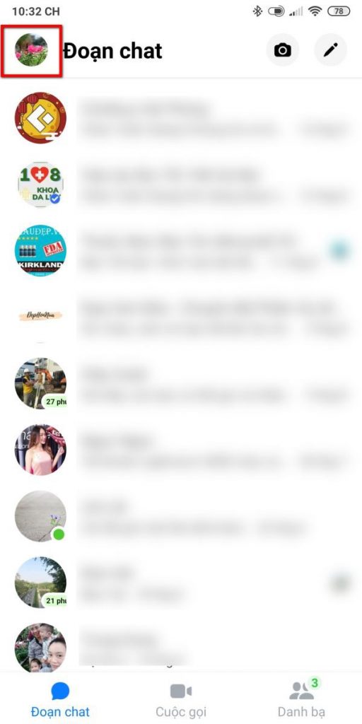 Bước 1: Mở ứng dụng Messenger và nhấn vào hình đại diện ở góc trên bên trái của màn hình.