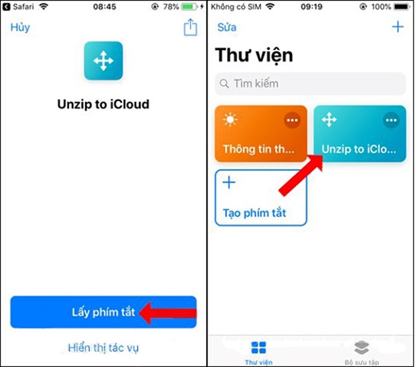 Bước 1: Truy cập TẠI ĐÂY để cài đặt phím tắt Unzip to iCloud, sau đó phím tắt sẽ được hiển thị trong thư viện ứng dụng Siri.