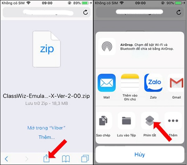 Bước 2: Sử dụng trình duyệt Safari để vào trang web có file cần giải nén. Mở file nén, ấn chọn Share ở dưới màn hình và chọn Phím tắt để mở file trong ứng dụng Siri.