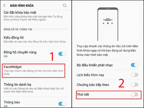 Đối với điện thoại Samsung: Vào Cài đặt > Chọn Màn hình khóa > Chọn FaceWidgets > Kích hoạt tính năng Thời tiết.