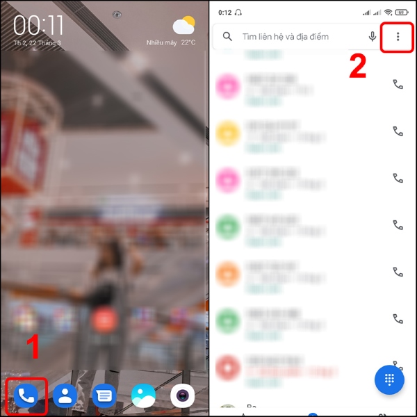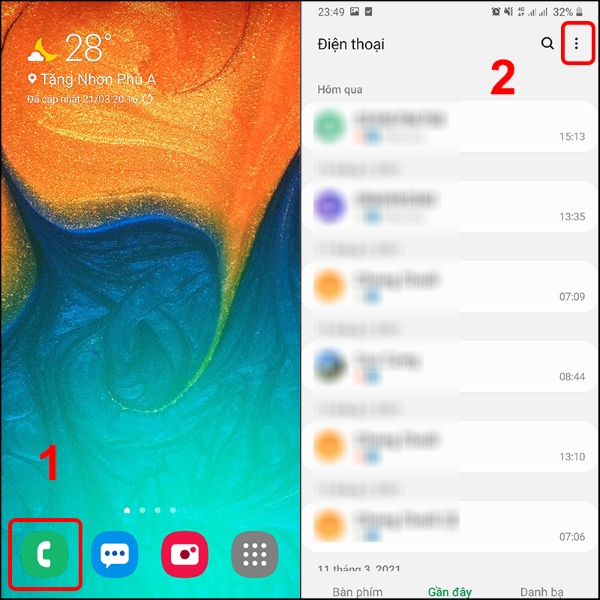 Bước 1: Mở ứng dụng Điện thoại > Chọn vào biểu tượng dấu Ba chấm.