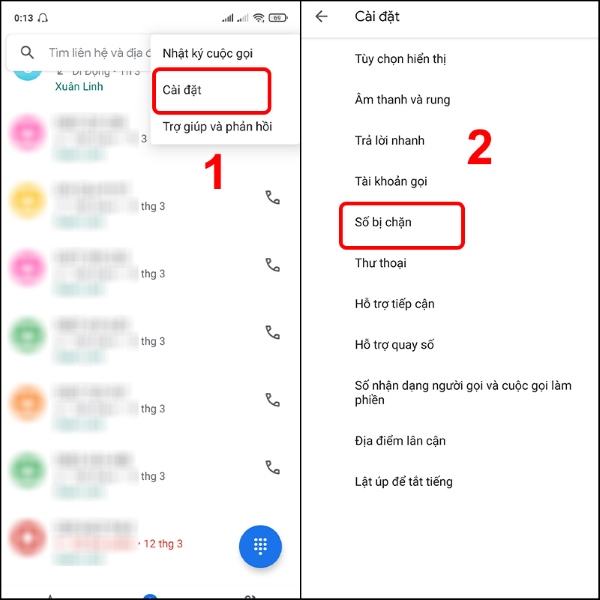Bước 2: Nhấn vào Cài đặt > Nhấn chọn Số bị chặn.