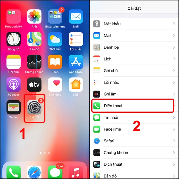 Bước 1: Mở vào Cài đặt trên iPhone > Chọn mục Điện thoại.