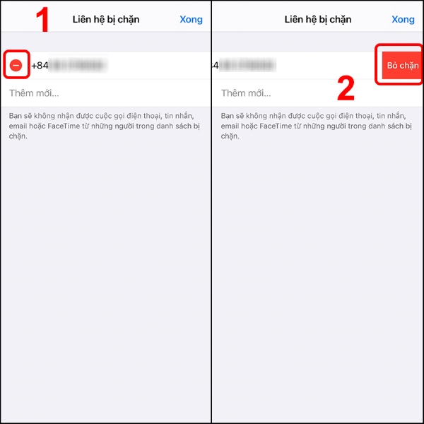 Bước 3: Nhấn vào dấu trừ (-) > Chọn Bỏ chặn để xóa chặn cuộc gọi đó là được.