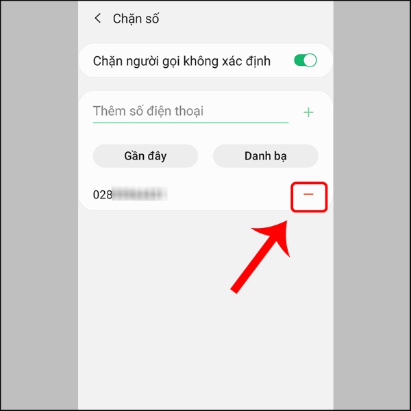 Bước 3: Nhấn vào dấu trừ (-) bên phải số liên lạc bạn muốn bỏ chặn > Nhấn lưu để hoàn tất cách bỏ chặn cuộc gọi trên điện thoại Samsung.