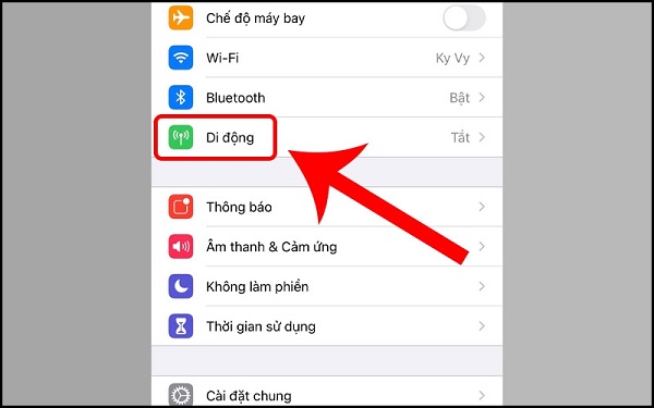Bước 1: Đầu tiên, người dùng hãy tiến hành mở ứng dụng Cài đặt trên điện thoại >> nhấn vào tùy chọn Di động.