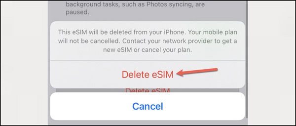 Bước 4: Khi màn hình xuất hiện lên thông báo, người dùng hãy nhấn Xóa eSIM (Delete eSIM) một lần nữa để xác nhận.