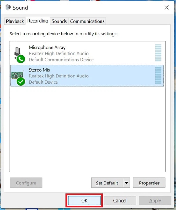 Bước 5: Nhấn chuột phải vào Stereo Mix > chọn Set as Default Device. Lúc này, loa sẽ hiện lên dấu tích màu xanh lá.