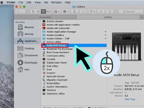 Bước 3: Tại mục Application, click đúp chuột vào Audio MIDI Setup.